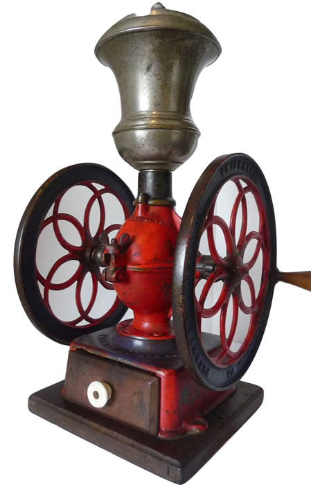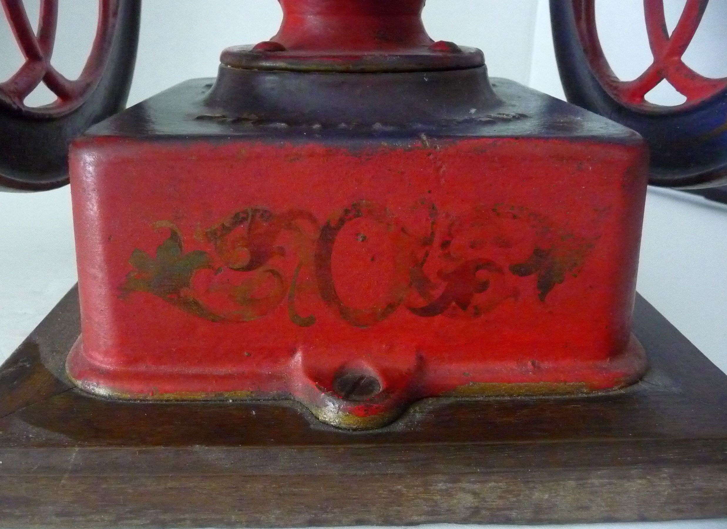 Painted Cast Iron Coffee Mill Enterprise #4 Brass Hopper 10" Wheels 1870