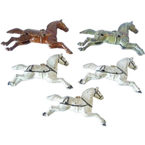 Antique Painted Cast Iron Horses (5) For Fire Engine Original Paint