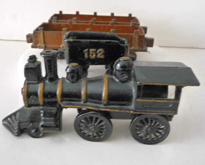 Painted Cast Iron 4 Piece Toy Floor Train Dent circa 1900
