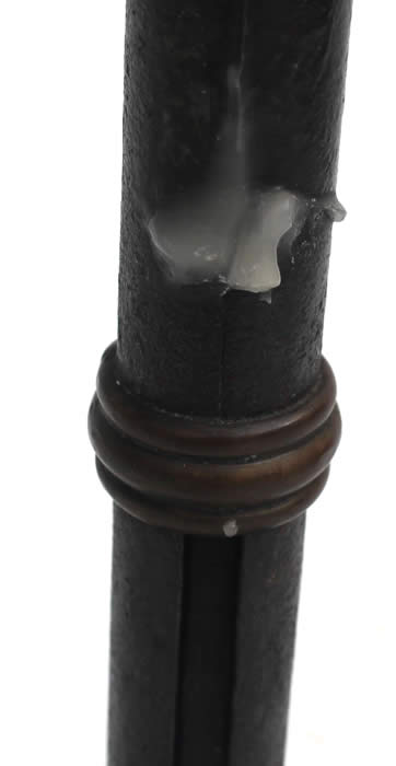 Banded candlesticks, those with either a steel or brass band around the middle of the shaft (often referred to as 'wedding bands'), were popular from the mid 18th century up to the early 19th century. In common with most English hogscrapers, it has no maker's markings.