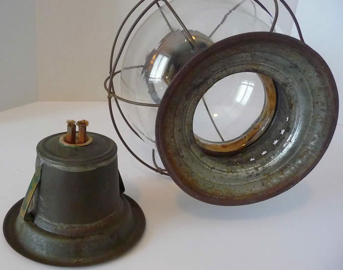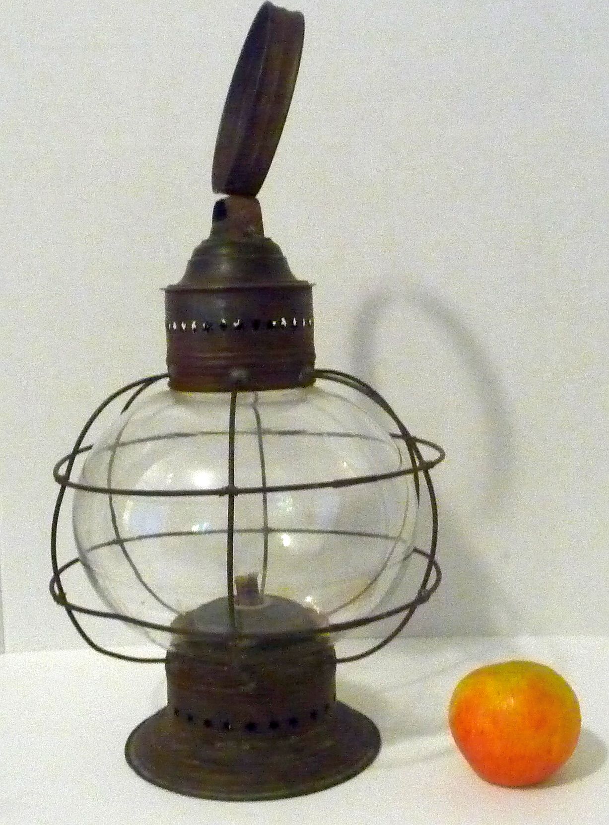 All Original including whale oil double burner. Large glass globe 10” diameter.