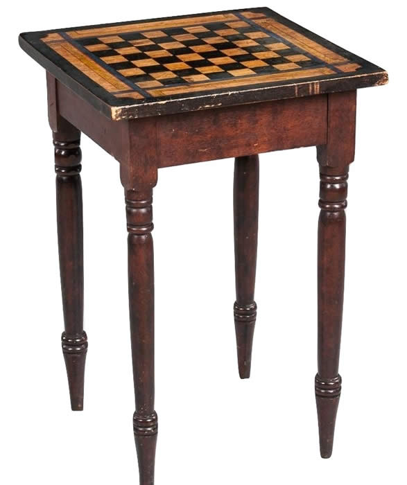 Paint-decorated Game-board-top Table, New England, 19th century.