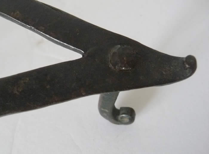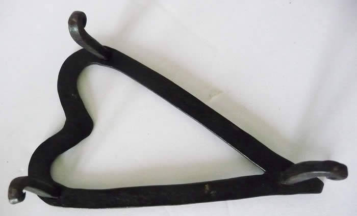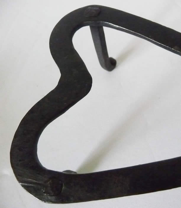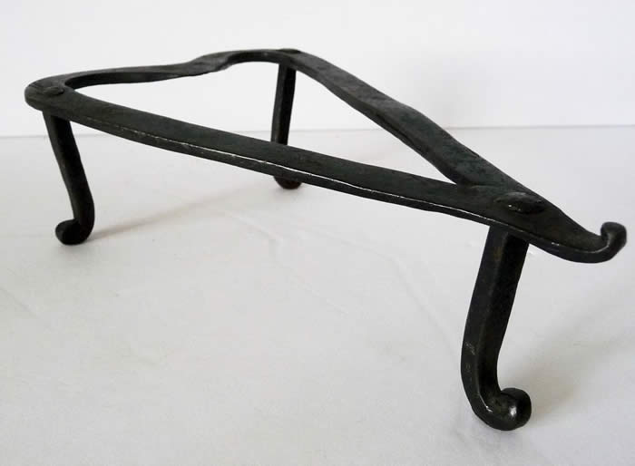 It has 3 little turned up feet that are mortised through to the top of the trivet.(see photos).